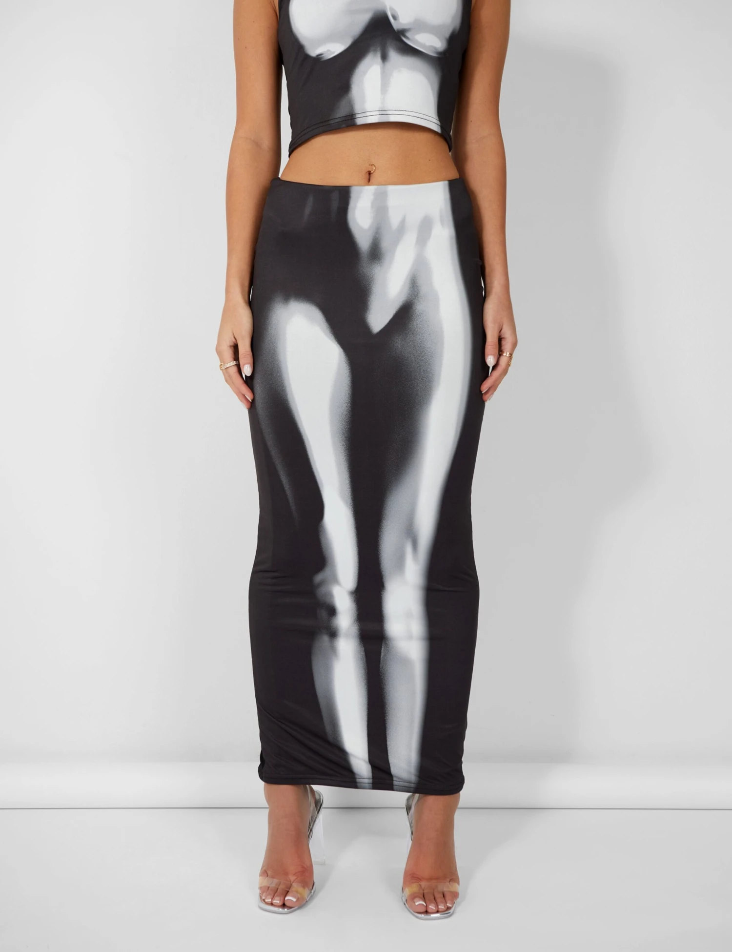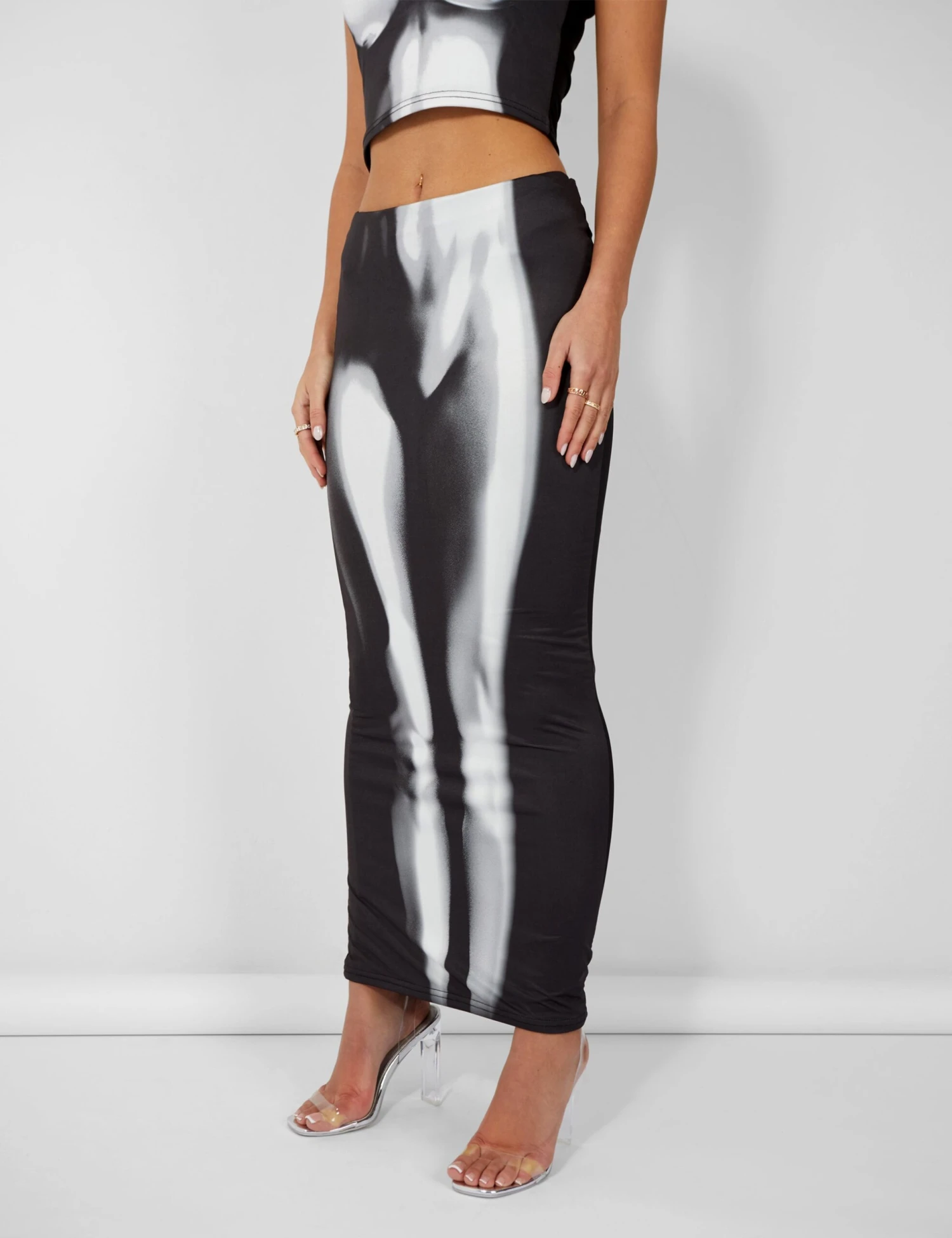 Introducing the new era of Public Desire! Step into our fantasy in bold metallics, sci fi sexy cut out pieces and vibrant prints. This midaxi skirt is the ultimate sexy style. It features a body heat print and flirty silhouette that will hug your curves and show off your figure. The black hue is timeless whilst the print add a touch of modernity. Whether you’re off on a date, meeting your besties, this skirt will give you a sexy vibe that will sure turn heads.