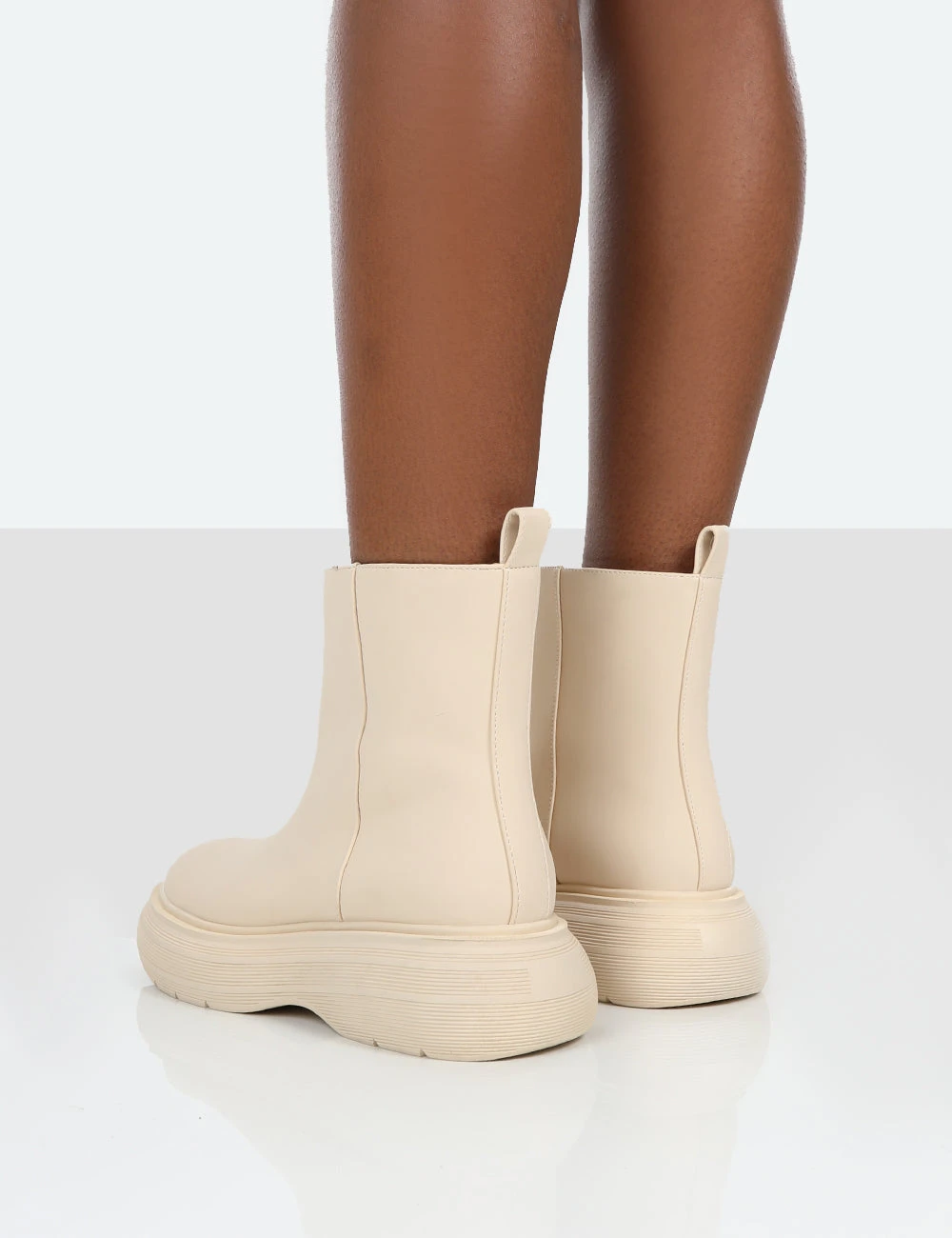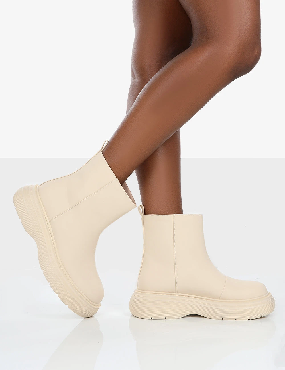 Caia nude is AW23 must have! Start the autumn season correct with a chunky platform sole. Perfect ankle boot to face all weather. What is not to love?