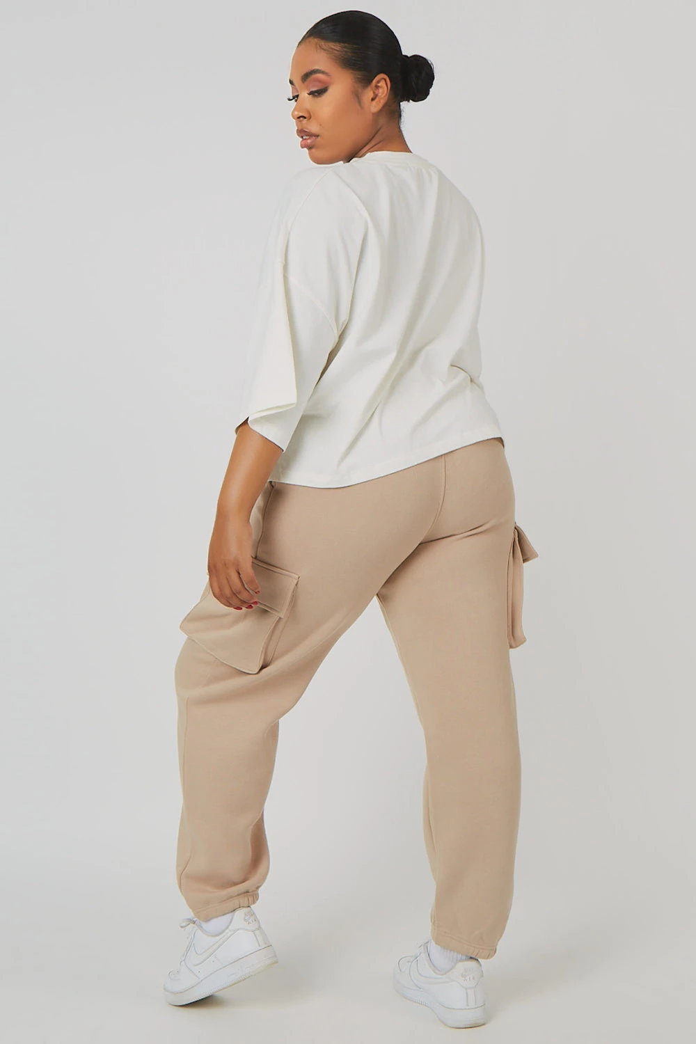 Light taupe cargo style joggers with pockets and elasticated cuffs