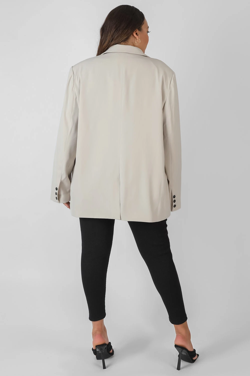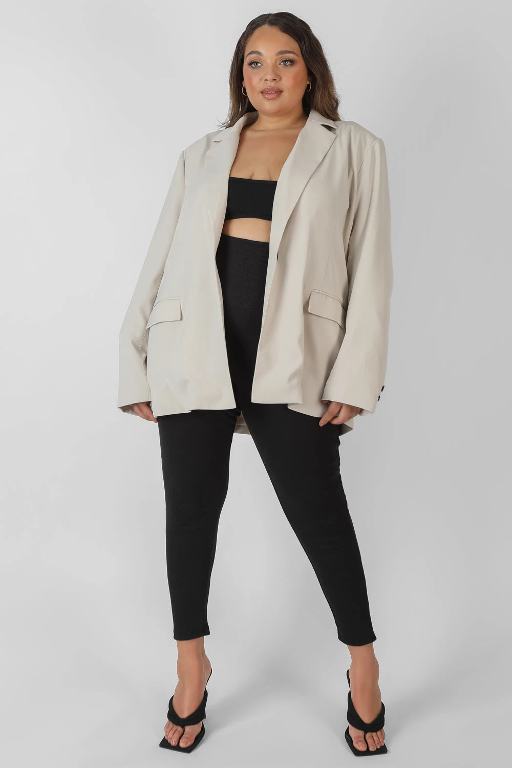 A must have OVERSIZED FIT blazer WITH FRONT POCKETS featuring a relaxed fit in stone.