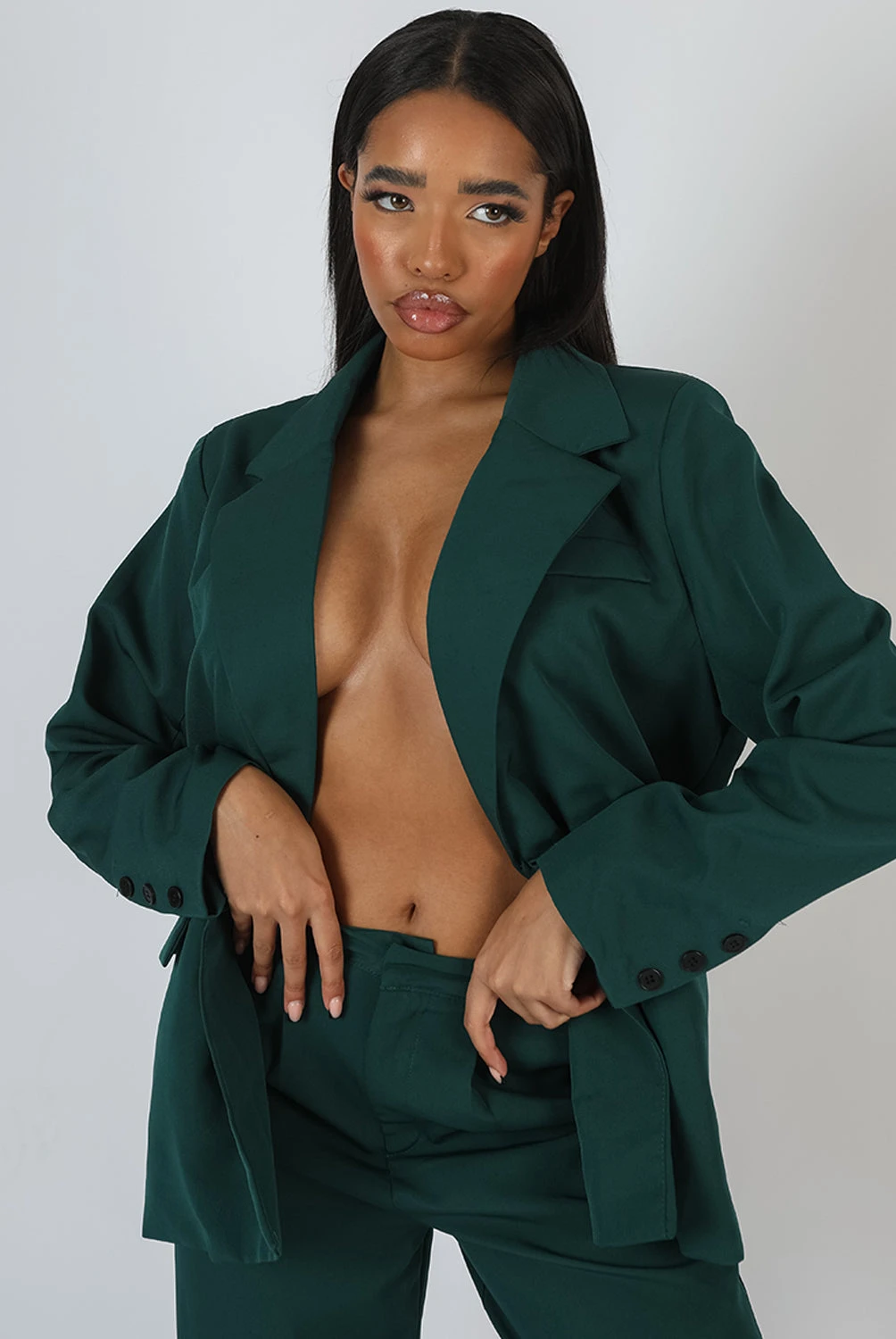 AN OVERSIZED FIT DAD STYLE BLAZER IN FOREST GREEN. PAIR WITH THE SPLIT FRONT MINI SKIRT IN FOREST GREEN OR THE DAD TROUSERS IN FOREST GREEN.