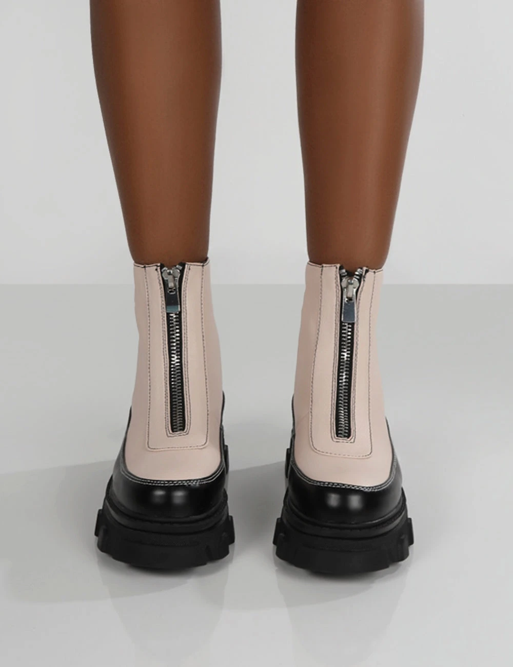 Direction features a chunky platform sole, contrast stitching and zip front detailing. What is not to love?