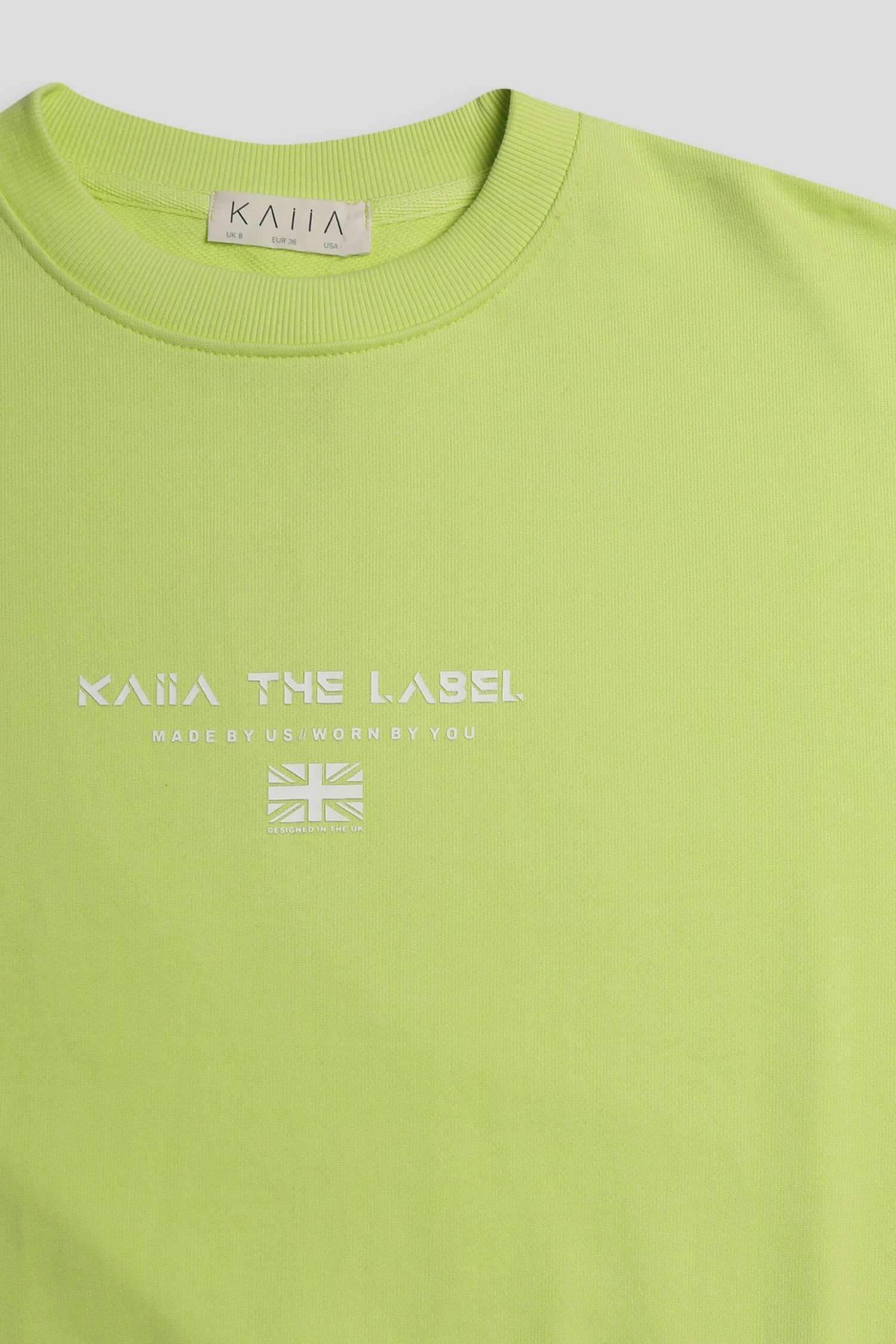 AN OVERSIZED FIT SWEATSHIRT IN A WASHED LIME FEATURING A SMALL GRAPHIC