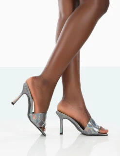 Roxie Silver Metallic Asymmetric Strap Square Toe Stiletto Heels