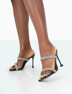 Regina Black Sparkly Diamante Stiletto Square Toe High Heels