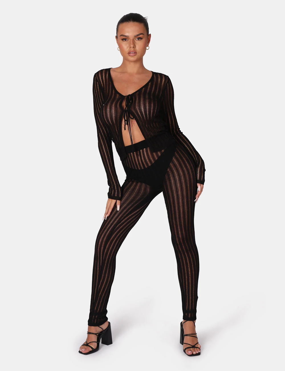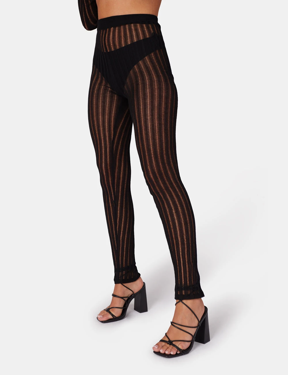 Black High waisted ladder stitch knitted leggings