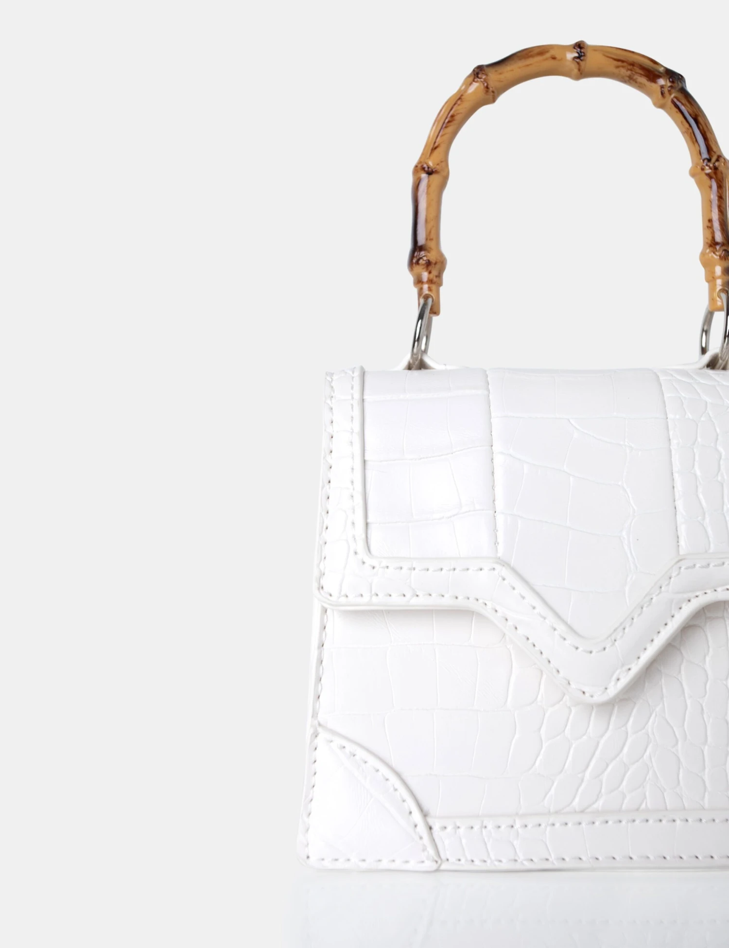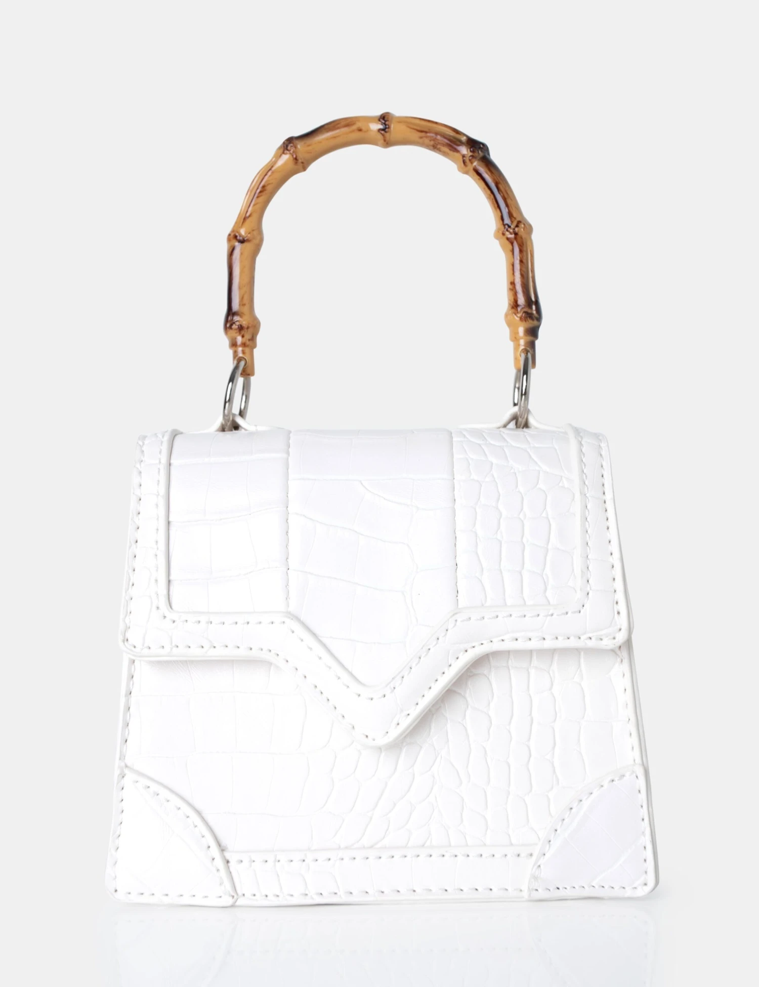 Slay the summer in style with the Jessica White Bamboo Top Handle Croc Mini Bag! This chic mini bag is the perfect mix of classy and modern. Take it anywhere to complete your look with an ultimate statement of fashion.