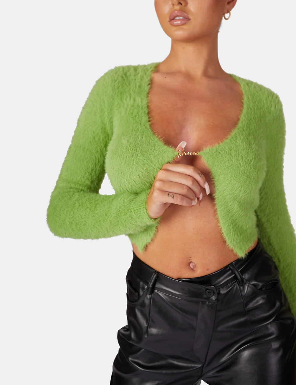 Long Sleeve Kaiia Trim Fluffy Knit Top Green