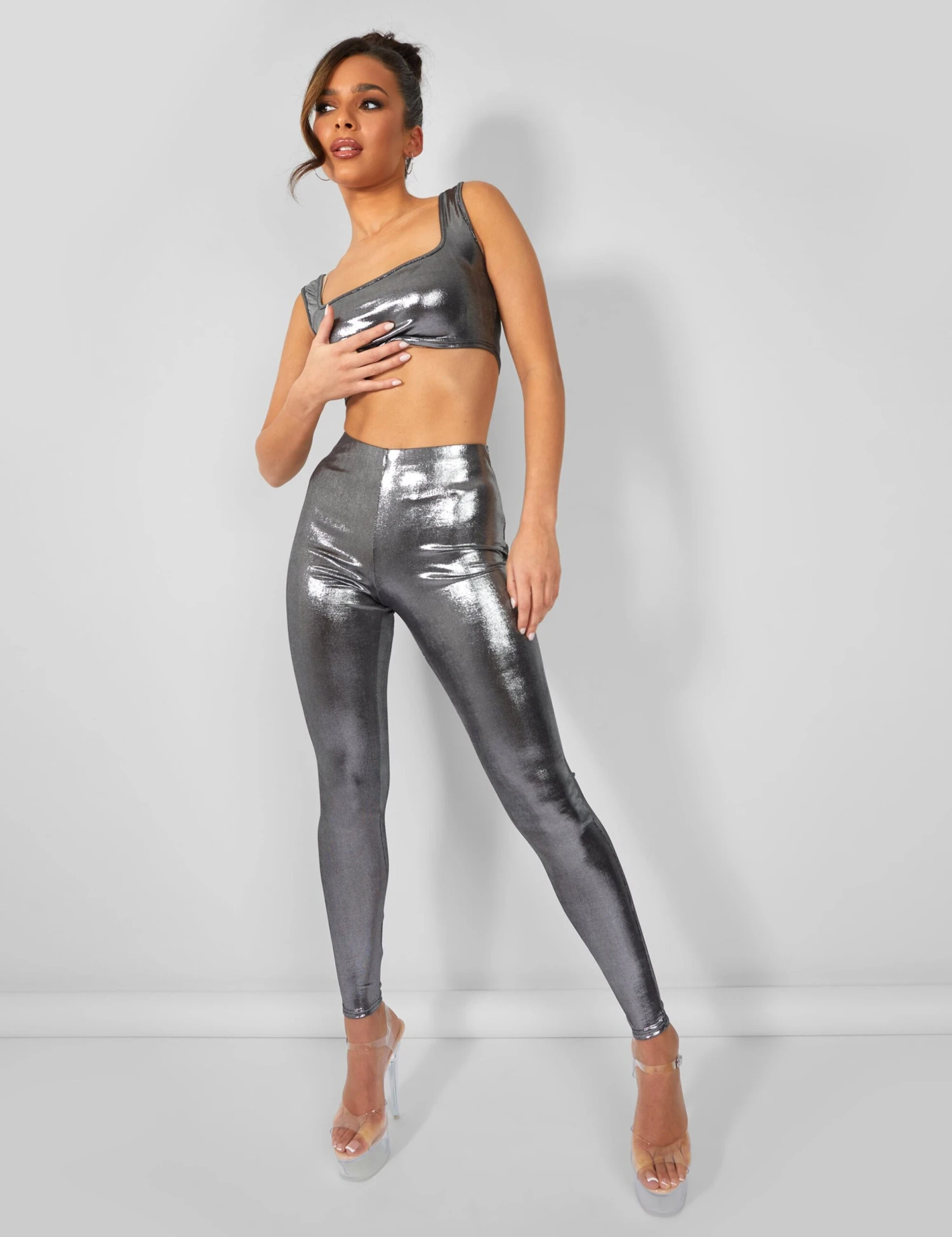 Introducing the new era of Public Desire! Step into our fantasy in bold metallics, sci fi sexy cut out pieces and vibrant prints. These metallic legging are perfect for making a statement this season. The silver chrome finish is sure to make an impact. Chrome dominated the 2023 runaways and these legging are the perfect way to show off your style. Whether you’re going for a night out or just running errands these legging will make you shine. Here at PD HQ we want you to feel your best inside and out. Our clothing is here to take you there!