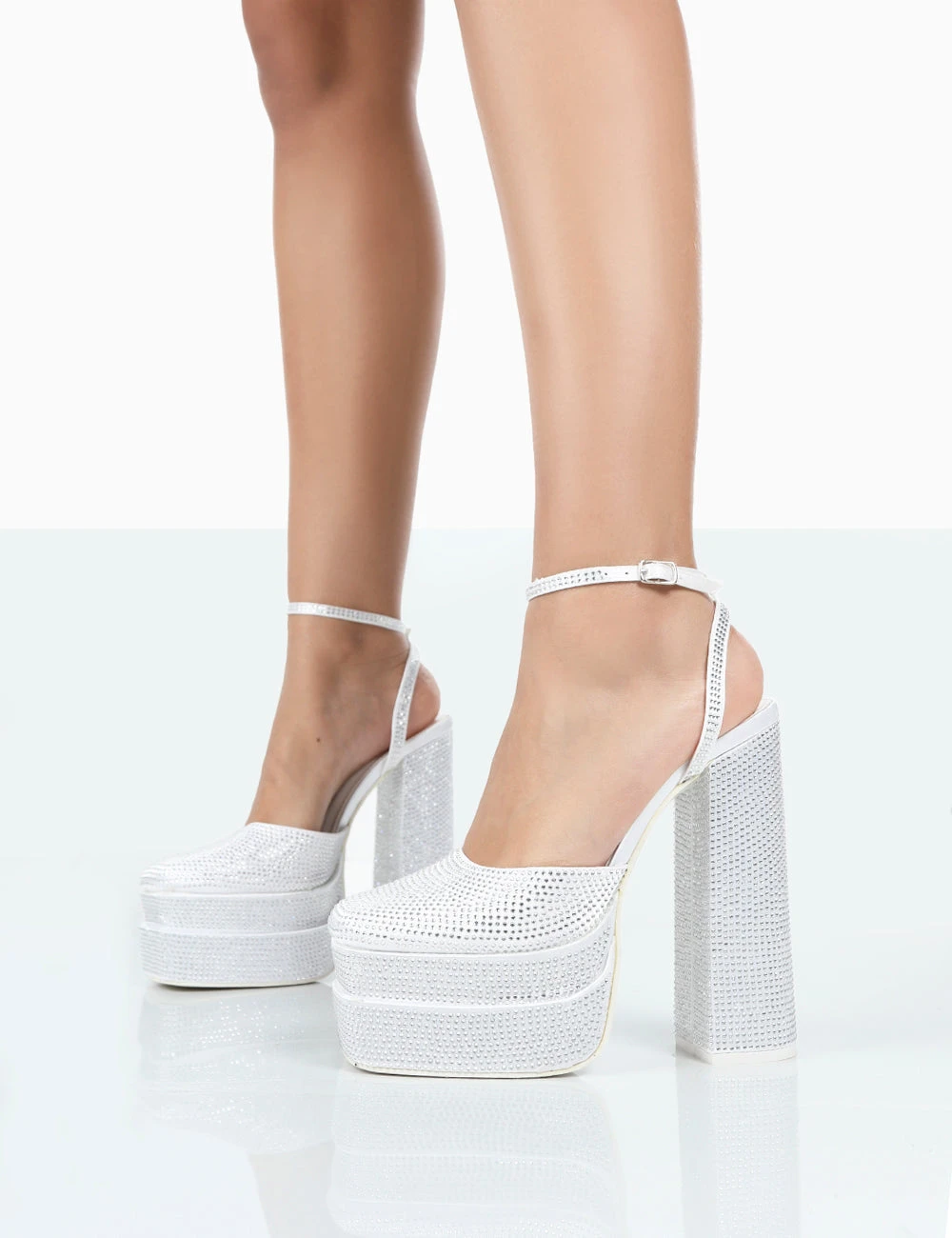 ALERT!! ALERT!! – NEW SHOE BOMBSHELL JUST LANDED … Your fave PLATFORM HEELS have been to the salon and has come back glistening! GIRL… Moonchild White Diamanté is the ultimate pair of heels that you need in your wardrobe, add them to your collection today – It’s a NEED not a want!
