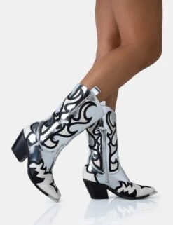 Starrie Silver Mirror Pu Metal Square Toe Heeled Cowboy Ankle Boot