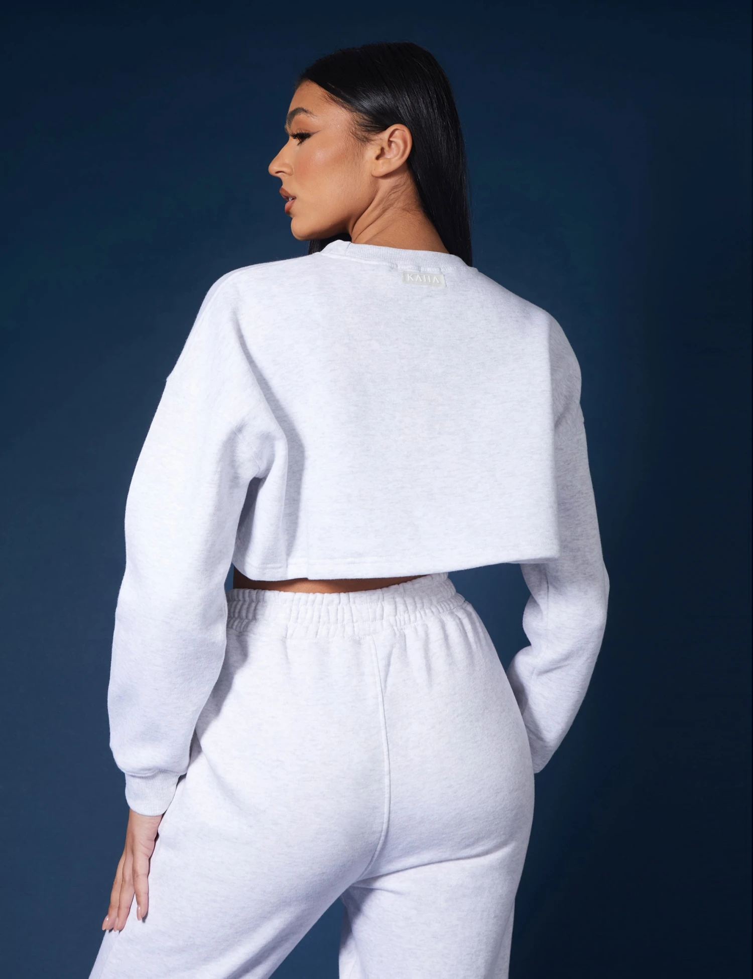 A long sleeve cropped sweatshirt with a crew neck in oatmeal marl.