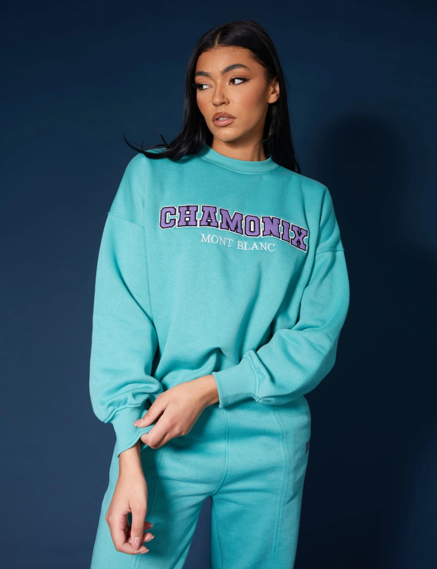 A OVERSIZED FIT SWEATSHIRT WITH A CREW NECK IN AQUA WITH EMBROIDERY