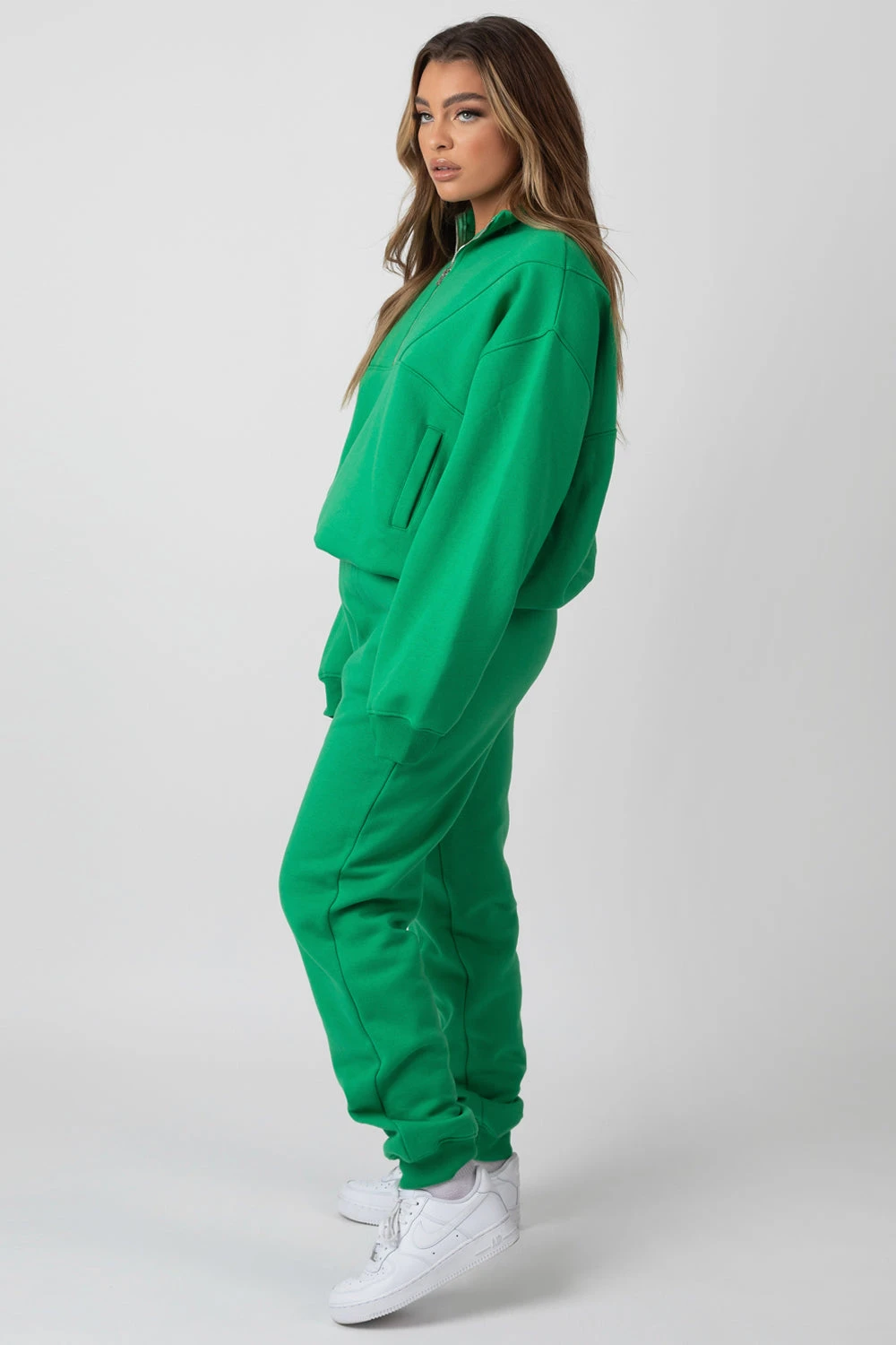 An oversized fit sweatshirt in green with a functional half zip.