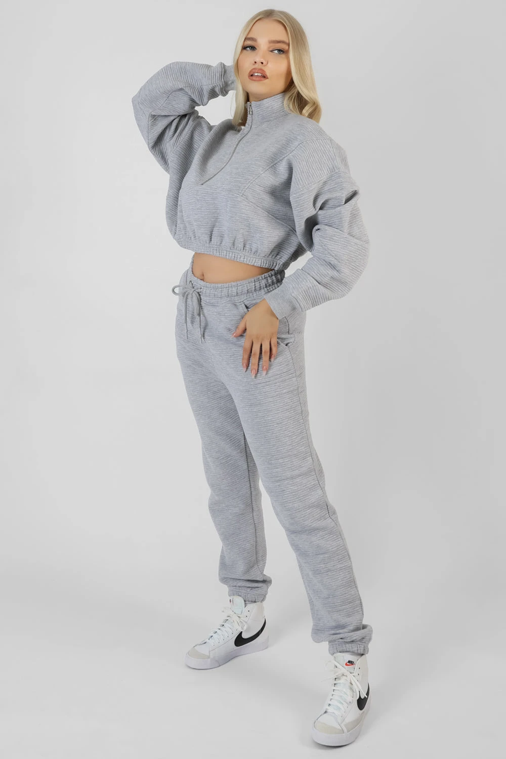 OVERSIZED FIT 90’S STYLE HIGH WAISTED JOGGERS IN RIBBED GREY MARL