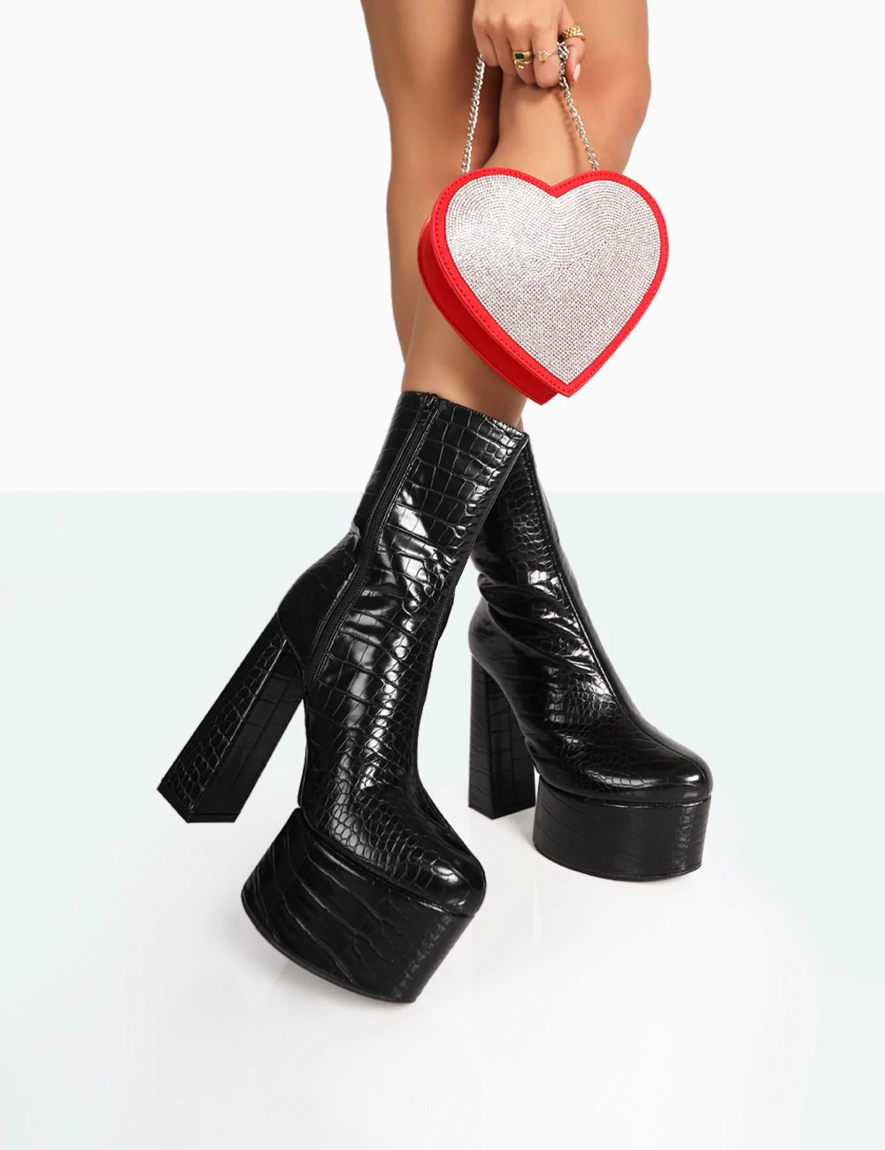 Be the first to review “Parker Black Patent Croc Platform Rounded Pointed Toe Block Heeled Ankle Boots” Cancel reply