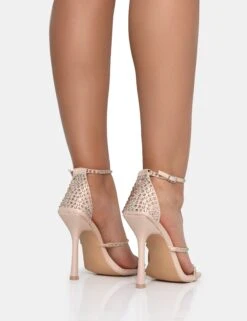 Golda Nude Diamante Strappy Barely There Square Toe Stiletto Heels