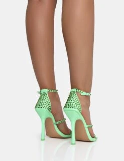 Golda Pastel Green Diamante Strappy Barely There Square Toe Stiletto Heels