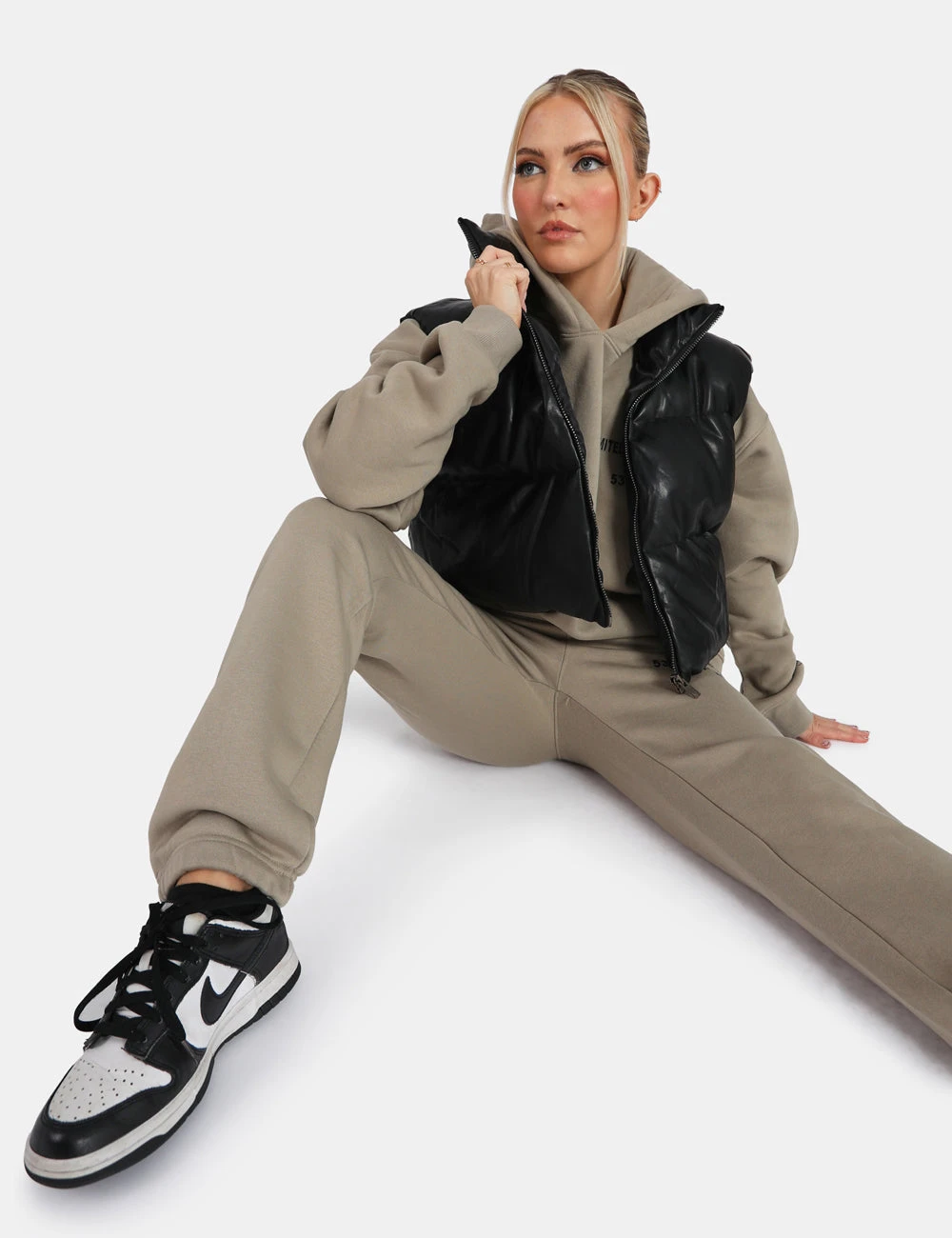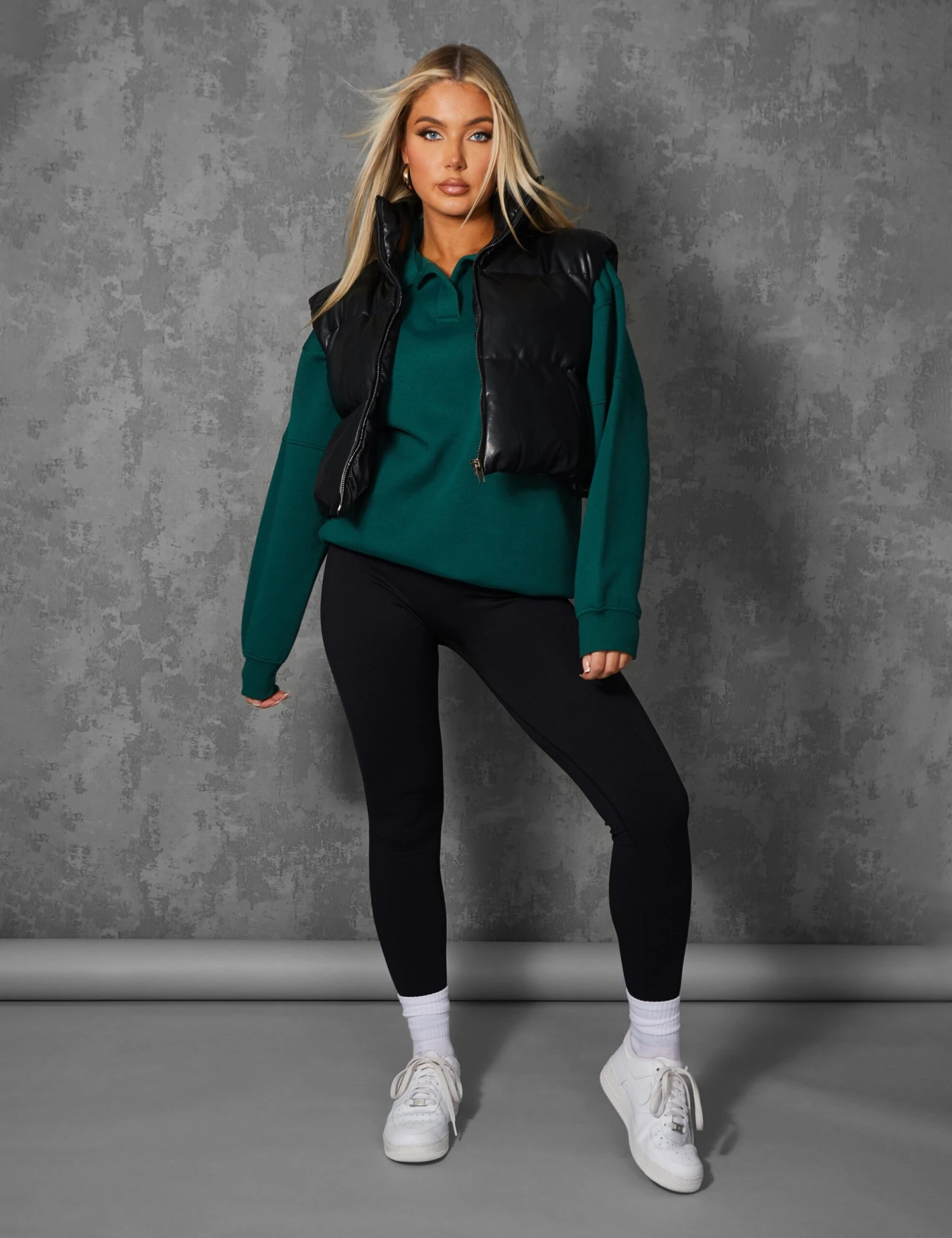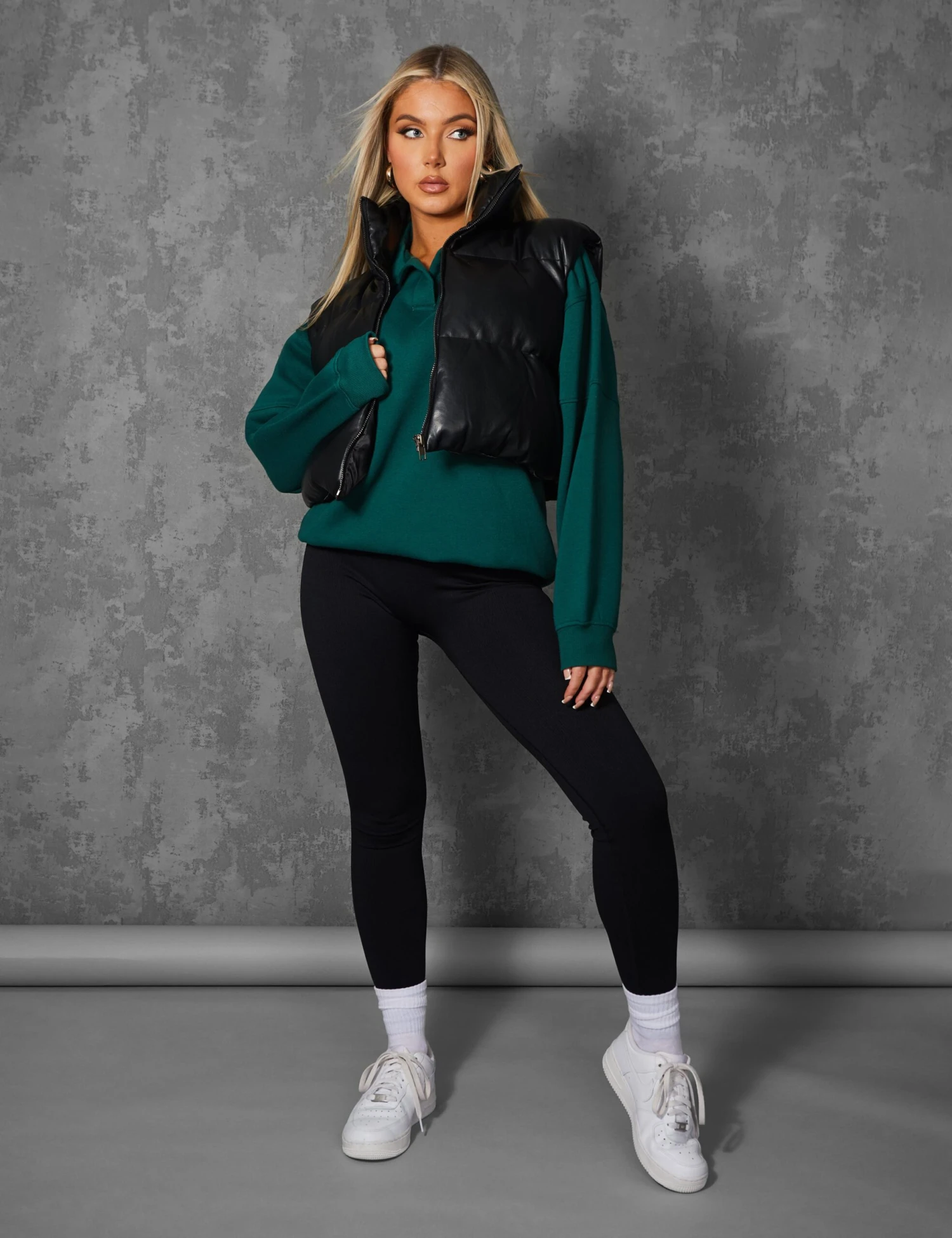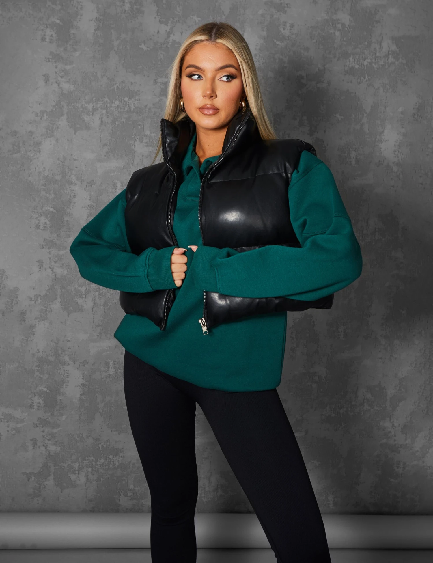 Layer up with a must have style this Autumn. Featuring a puffer gilet with a cropped design and a zip fastening in a black pu material.