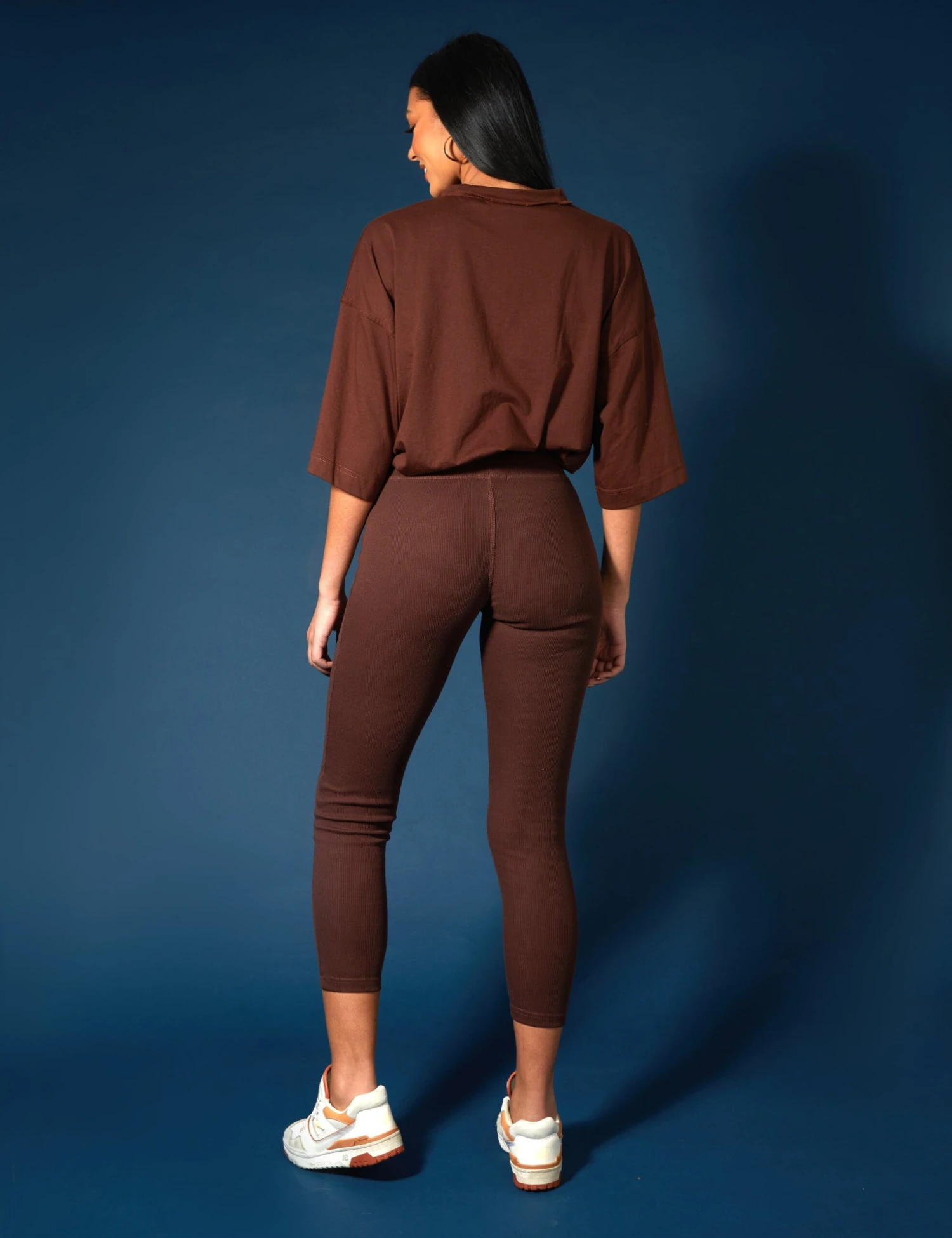 HIGH WAISTED RIBBED CHOCOLATE LEGGINGS.