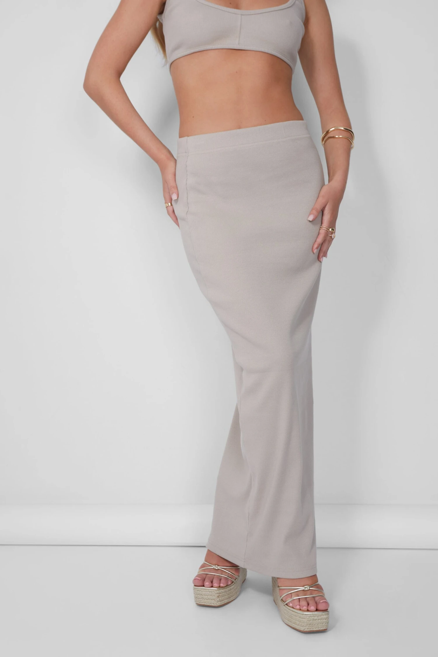 Combine your favorite elements of classic summer style and comfort with the Ribbed Maxi Skirt Stone. This trendy piece is perfect for any occasion – the ultimate classic that’ll transition effortlessly from day to night! You’ll love wearing this skirt all summer – it’s sure to become your new bestie!