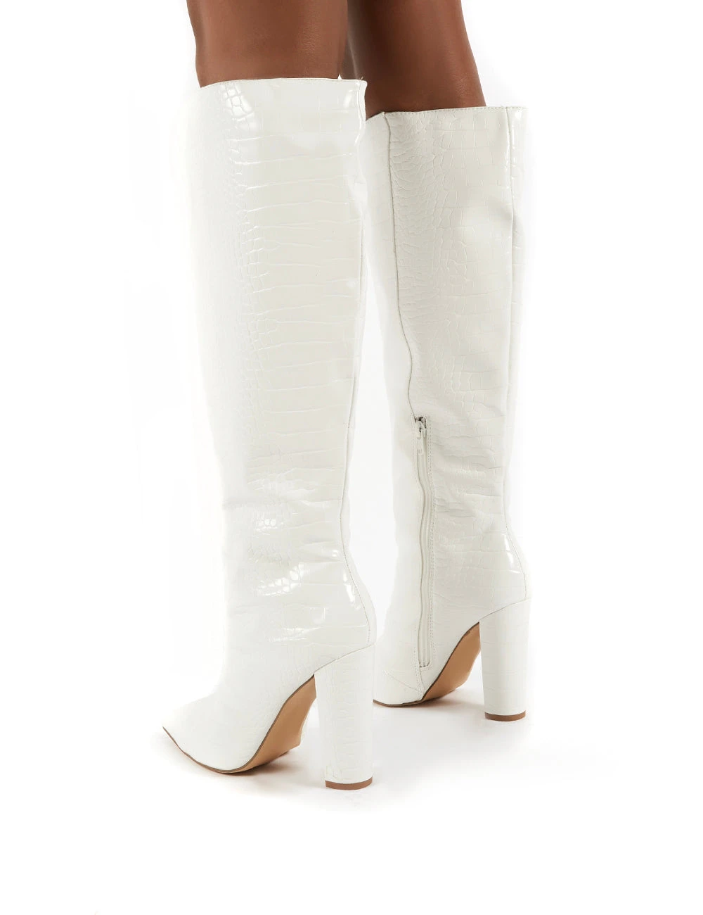 Slow features a croc print with pointed toe and block heel. These heeled boots will amp up any outfit!