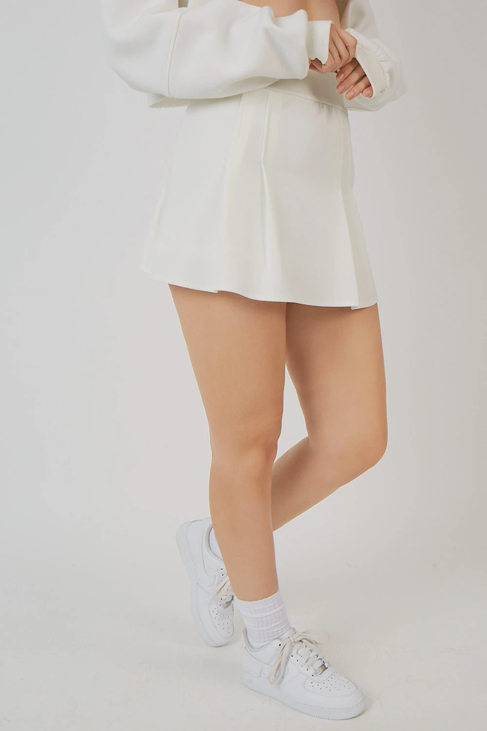 This mini tennis skirt is perfect for your new season wardrobe. Featuring a thick waist band and pleats on the front and back of the skirt.