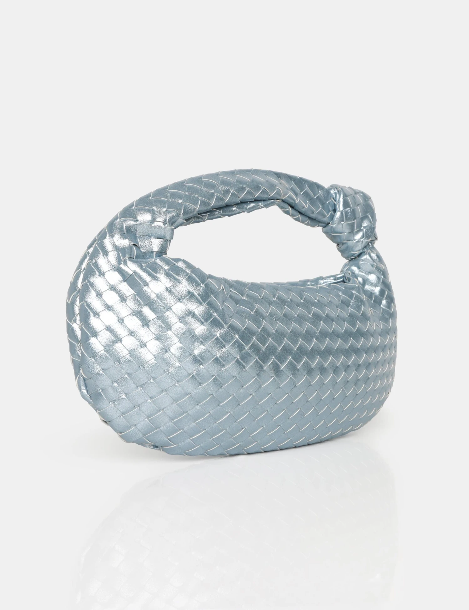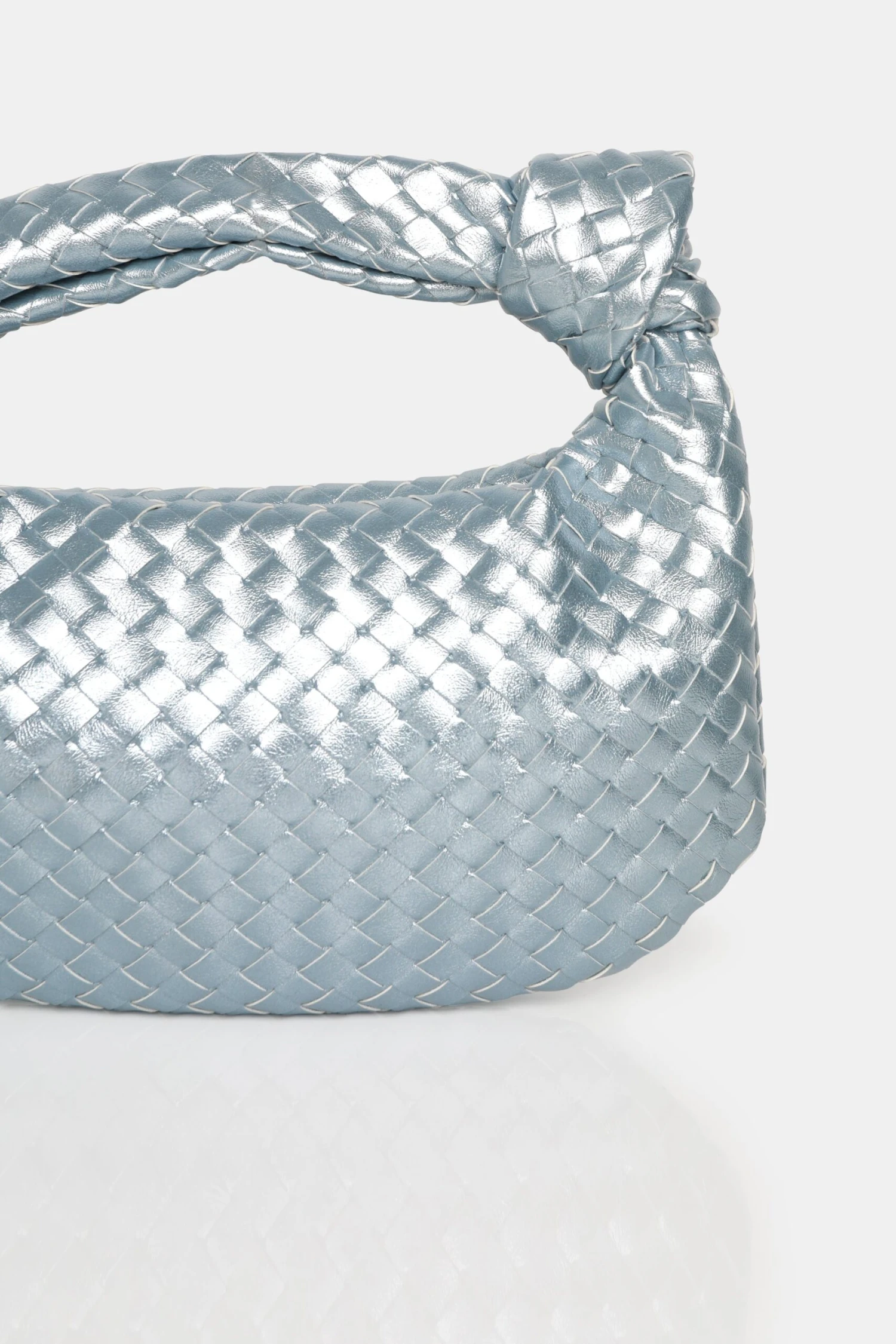 The Blame Metallic Silver Iridescent Woven PU Knot Detail Mini Grab Bag