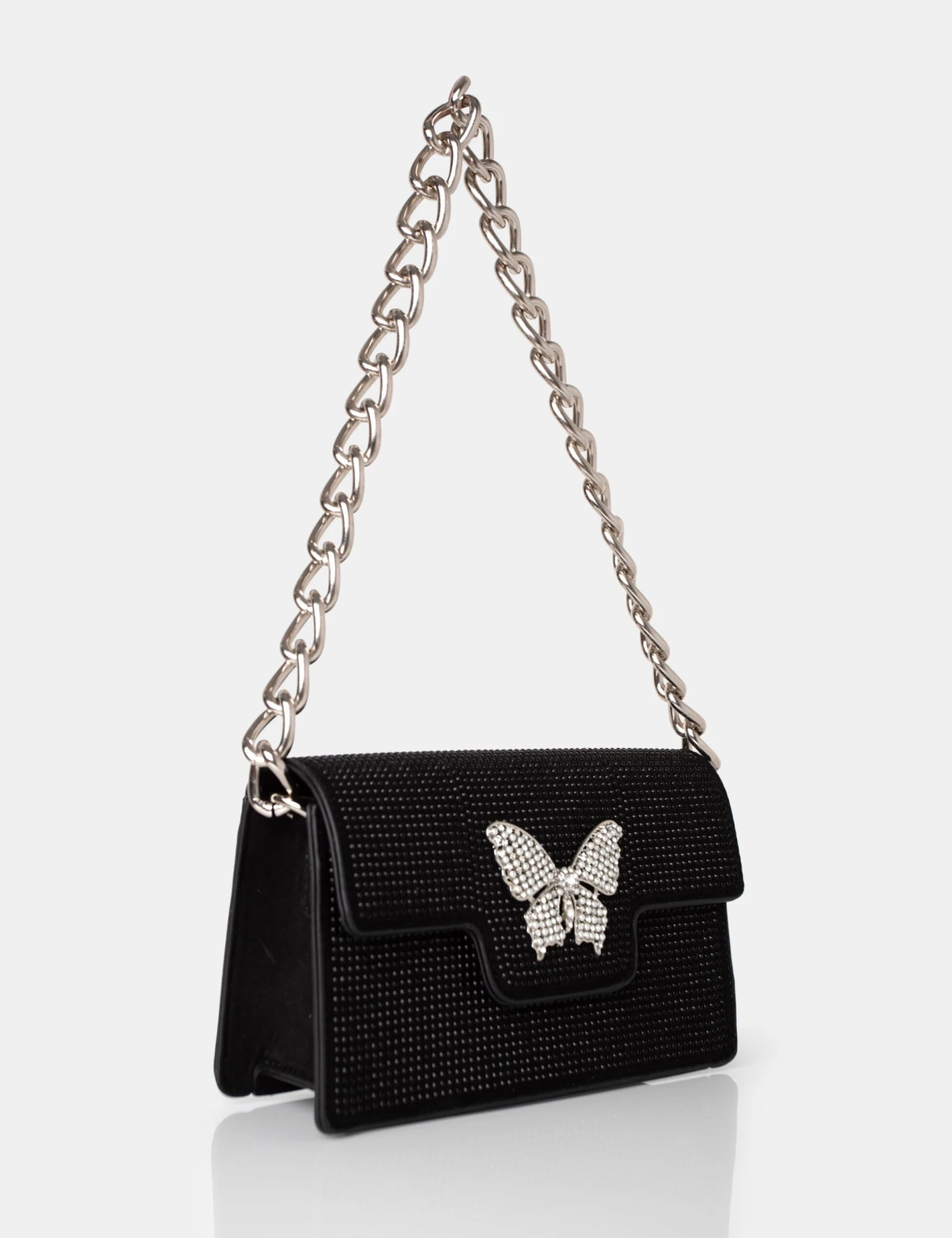 Ready to evolve…..? Introducing The Butterfly Black Diamante Shoulder Bag, the ultimate accessory for the stylish and confident woman who is ready to embrace her inner beauty and undergo a metamorphosis. So why settle for less..? when you can have The Butterfly! This bag will help you unleash a brand new you and transform your look with its stunning design. Get yours today and start your new era!