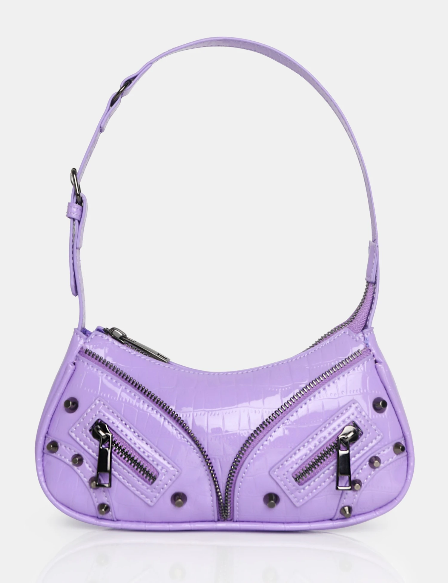 The Candice Zip Detailed Lilac Croc Shoulder Bag