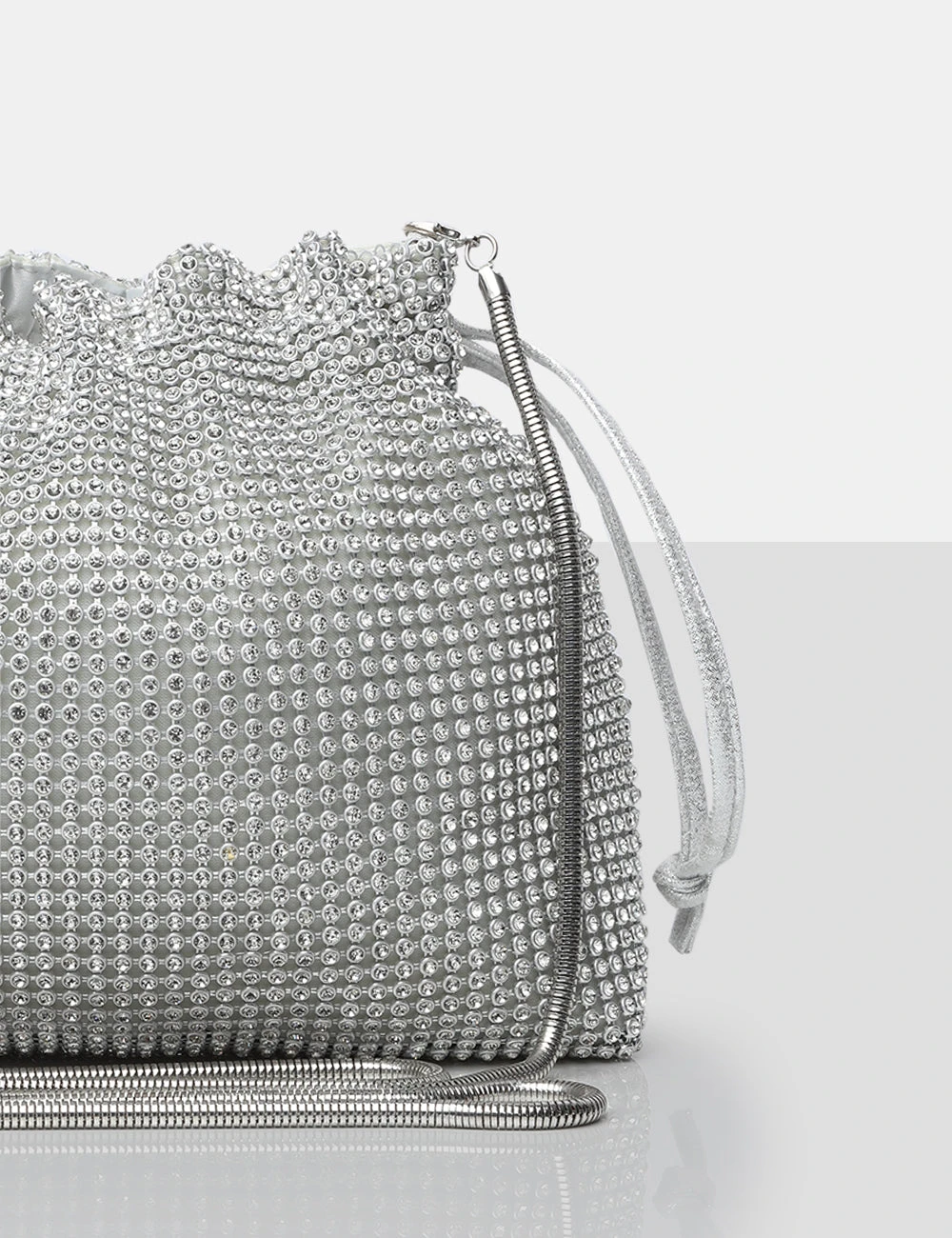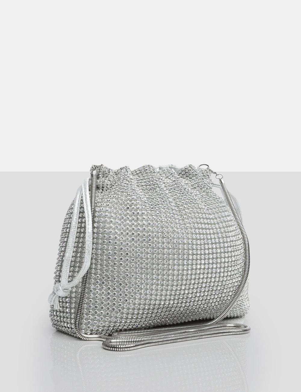 Your new fave silverdiamante draw string bag has just dropped. Claudette is a stunning women’s mini handbag that you need in your collection.