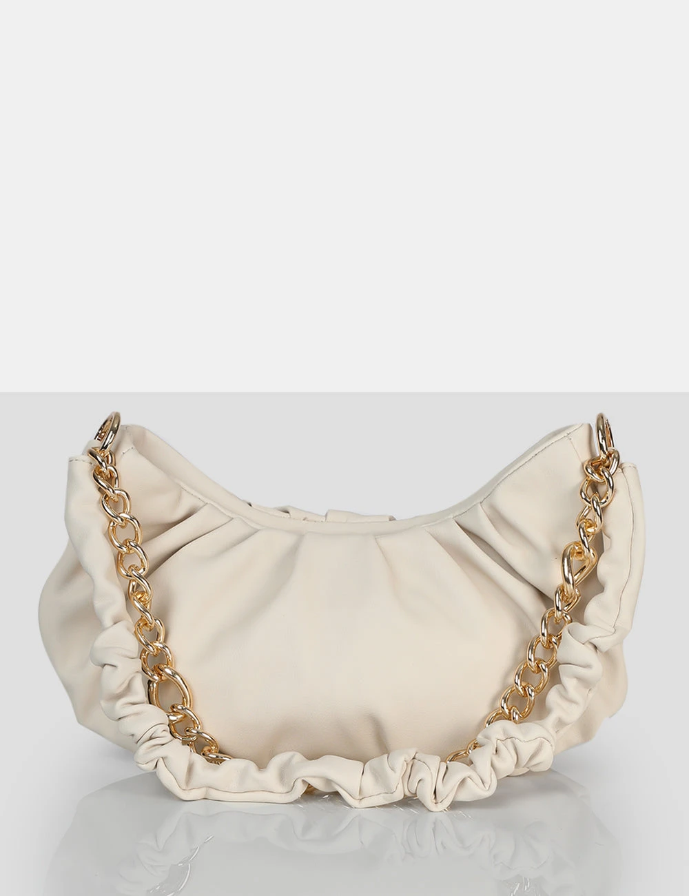Your new fave mini bag is here boo, introducing Livy in ecru. This super cute ruched shoulder bag is an absolute must-have. Add Livy to your womens bags collection today…