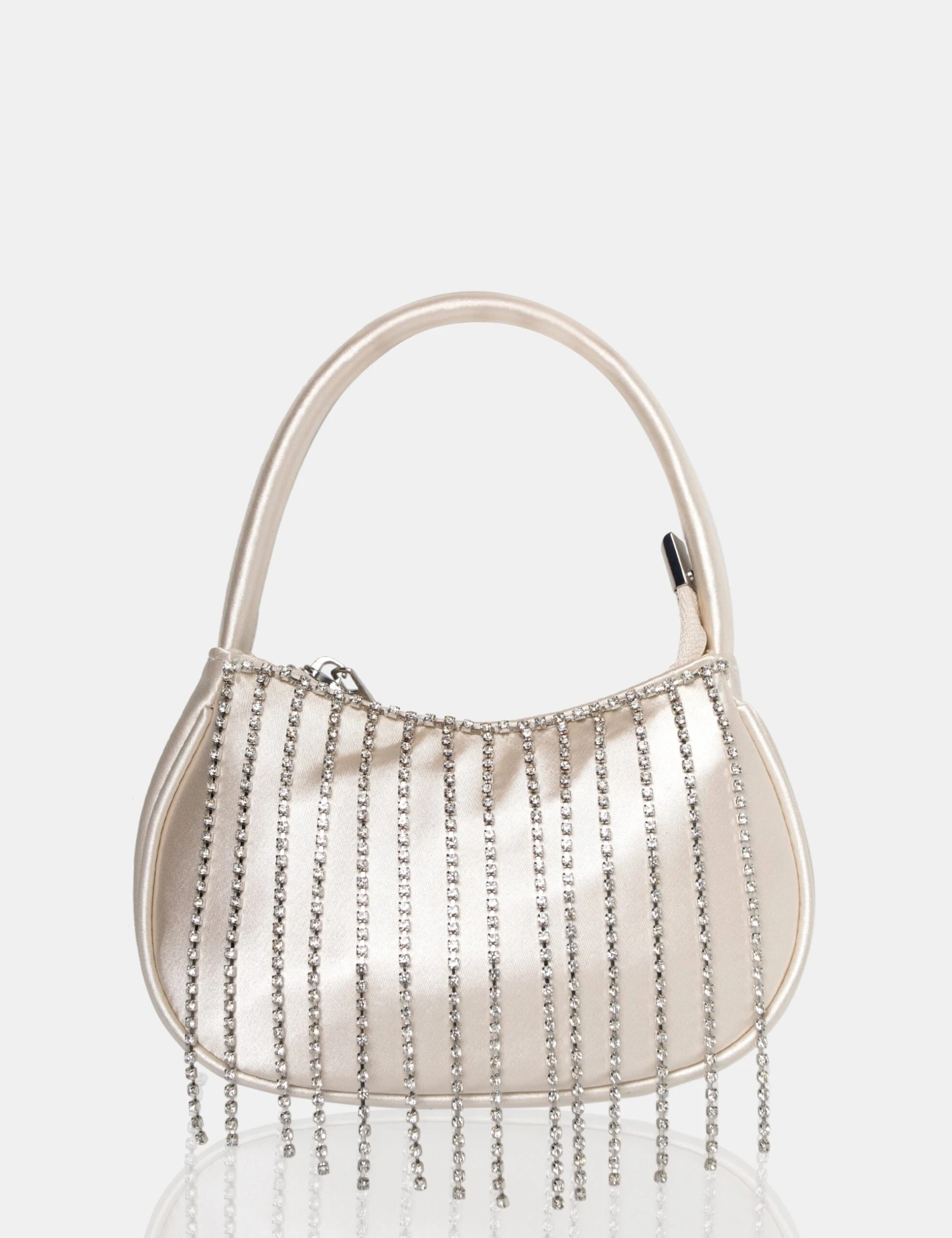 Introducing the Sia Ivory Satin Diamante Trim Mini Bag – the ultimate accessory for the fashion-forward and glamorous individual! Crafted with the finest ivory satin material, this bag is designed to add a touch of luxury and sophistication to any outfit.