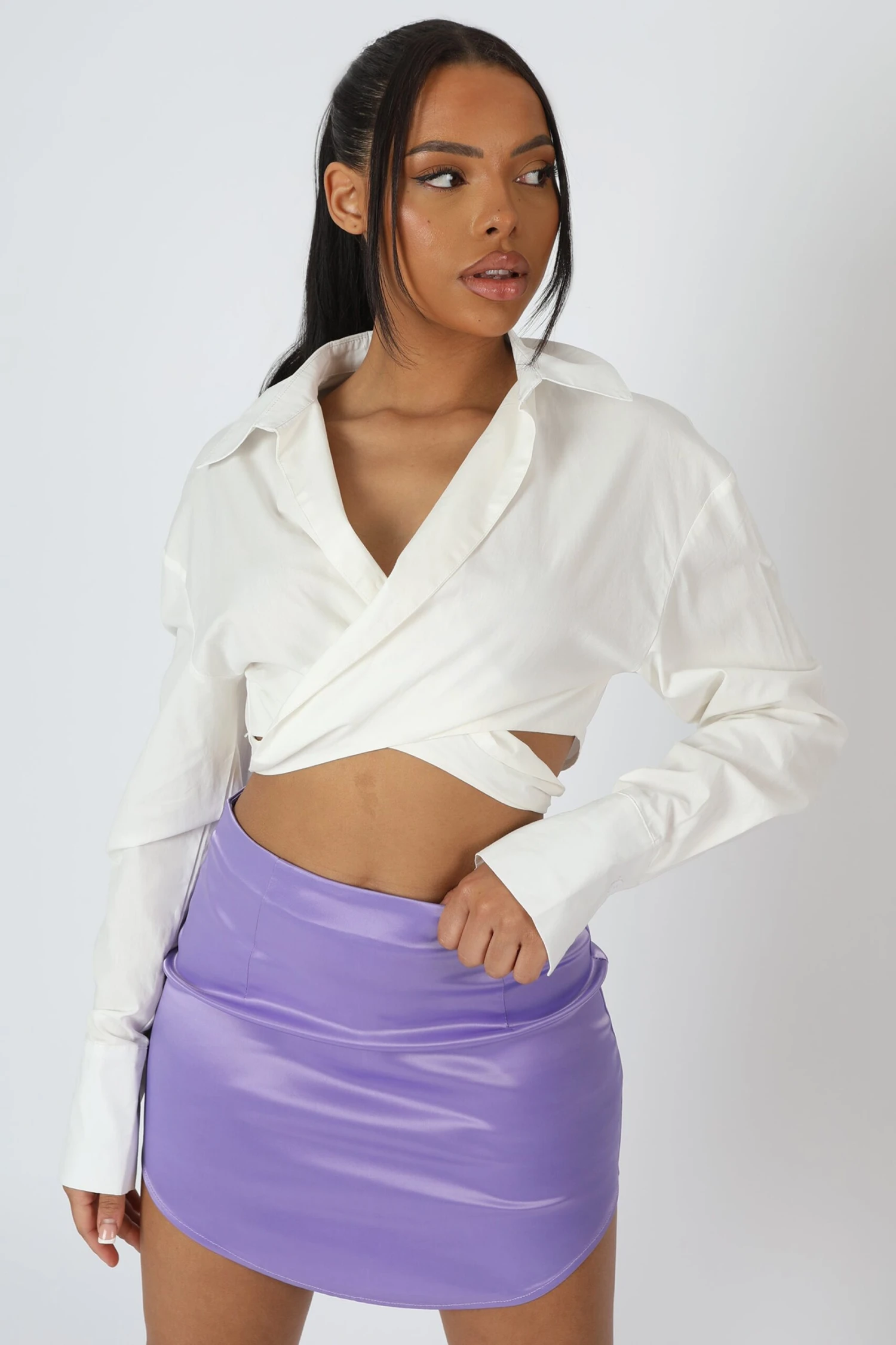 A WHITE POPLIN SHIRT WITH A WRAP WAIST DETAIL.
