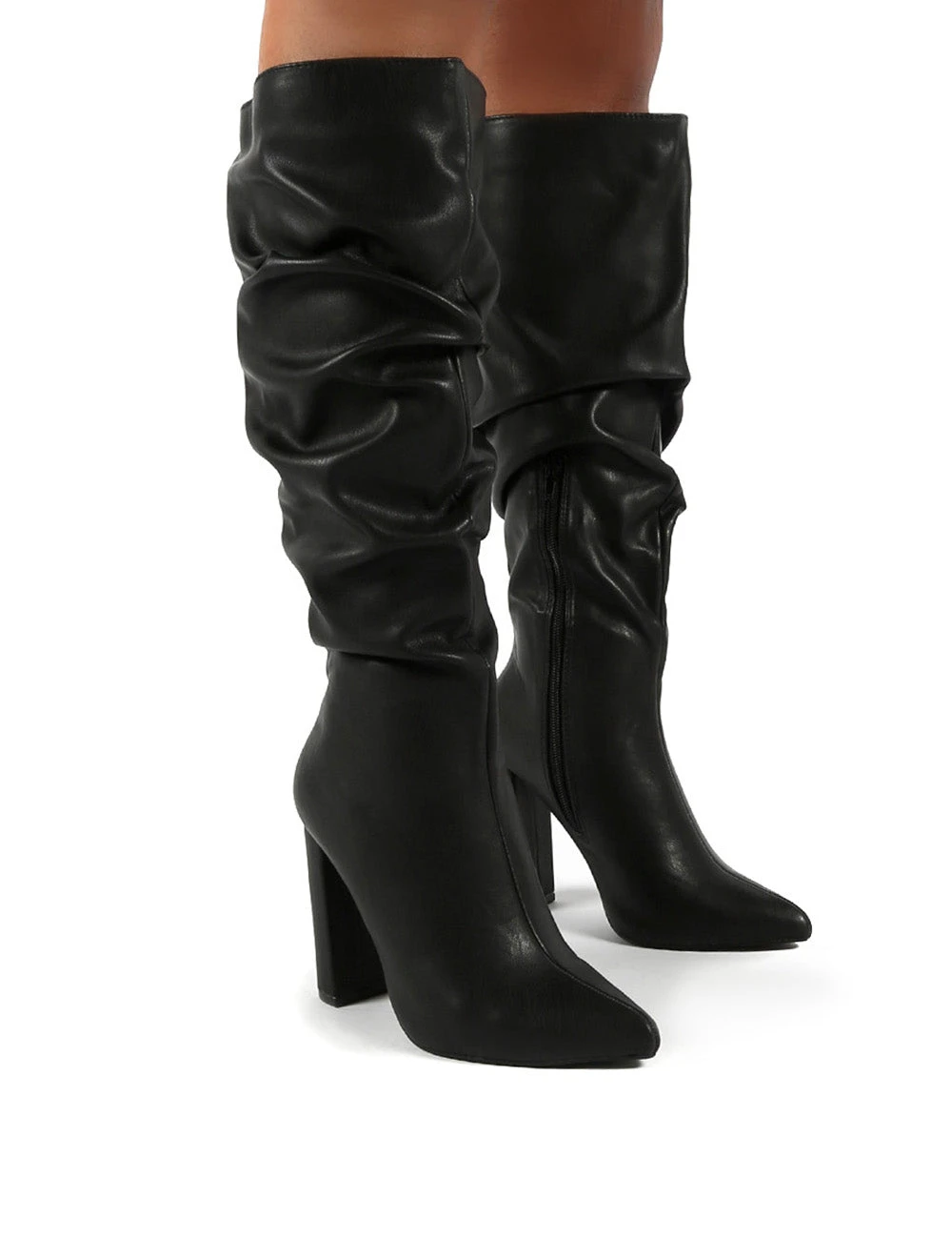 Get ready for knee high boot season in these ultimate boots! Yours features a patent finish with a ruching design and block heel. We cannot get enough of these!
